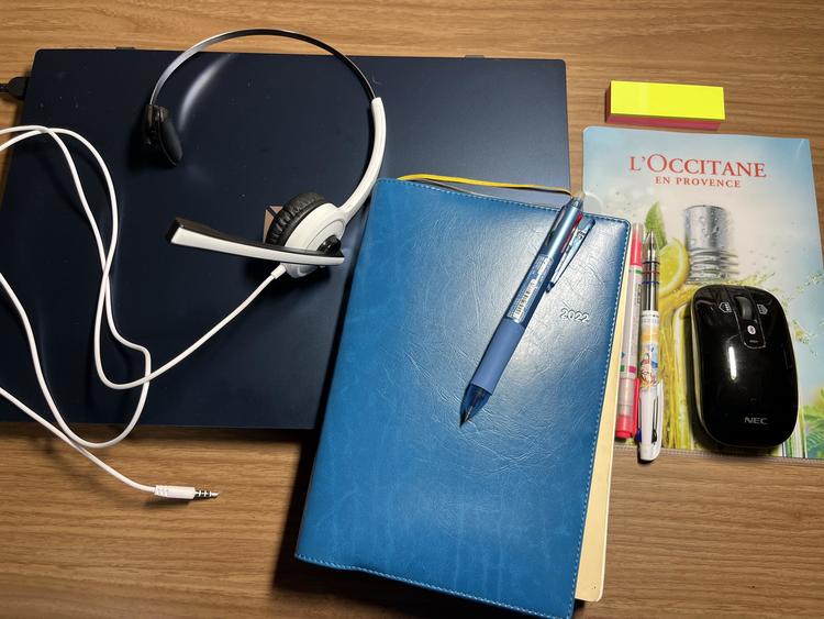 パソコン(ウイルス対策は必須)、インターネット接続可能な環境、ヘッドセットまたはマイク付きイヤホン、付箋、手帳、スマホ、ペンと紙です。