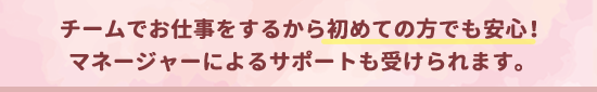 キャリア・マムでは、自宅や、自宅周辺で能力を活かして働ける在宅ワークを中心に、企業から依頼された業務を受けて、チームを作ってお仕事をしています。在宅ワークをこれから始める方も、マネージャーのサポートを受けながら業務を行うことができるので安心です。
