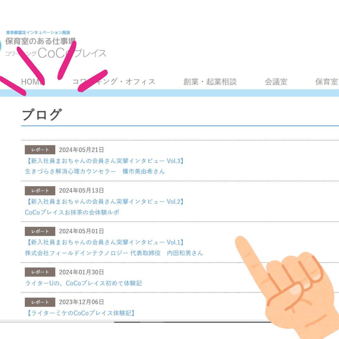CoCoプレイスのHPには、ブログのコンテンツがあるのをご存じでしたか♪ 会員さんの情報や、各種体験レポートを掲載しています。 直近では、新入社員まおちゃんのインタビュー記事を掲載中。 ぜひご覧くださいね! https://www.c-mam.co.jp/cocoplace/cocomagazine/