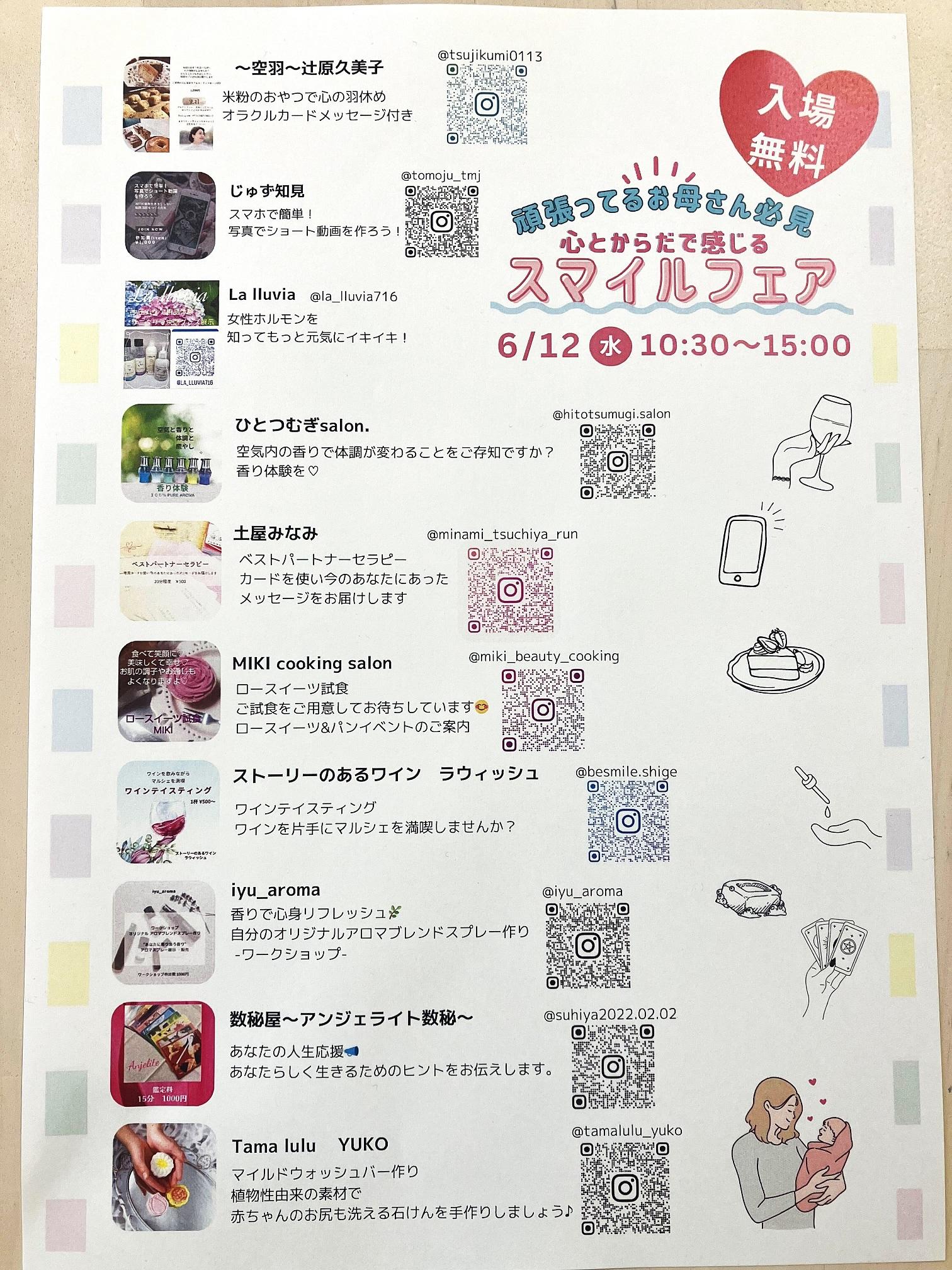 【日 時】6月12日(水)10:00~15:00 【会 場】キャリア・マムホール 【申 込】直接会場にお越しください。