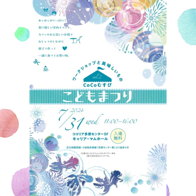 【日 時】7月31日(火)11:00-16:00 【場 所】キャリア・マムホール 【参加費】無料