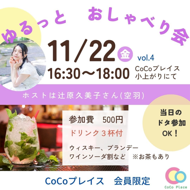11月22日(金)に、ゆるっとおしゃべり会を開催します♪