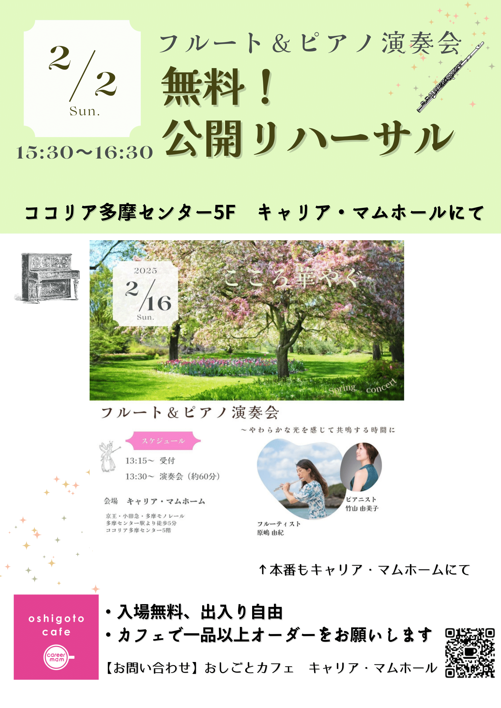 〇「こころ華やぐ」フルート&ピアノ演奏会 無料公開リハーサル