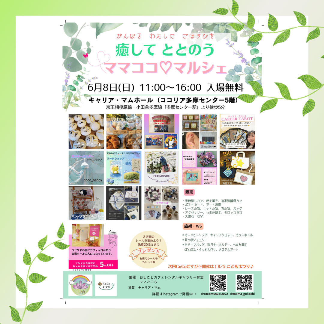 6月8日(土)、マムホールで開催される「ママココ♡マルシェ」は、