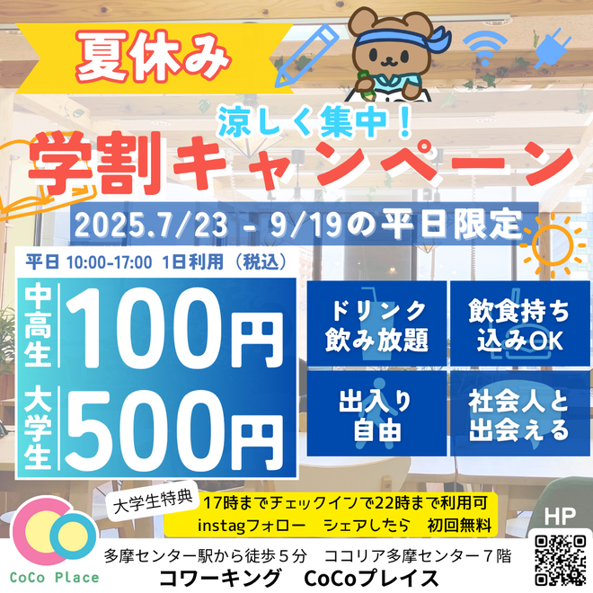 夏休みは涼しいCoCoプレイスでお勉強しませんか?