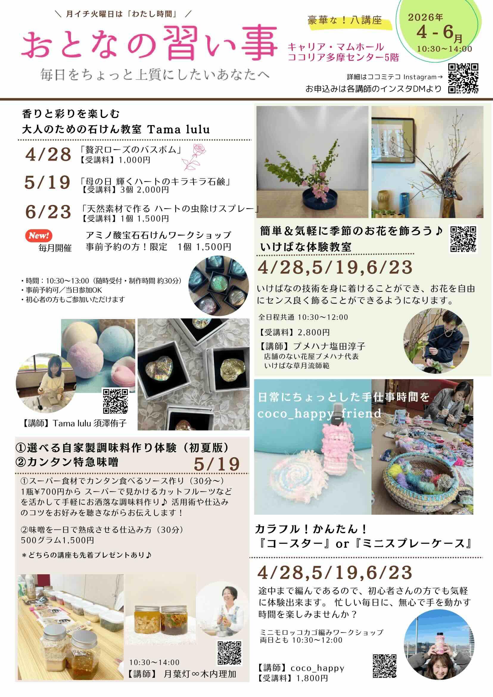 お申込みは各講師InstagramのDMよりお願いします