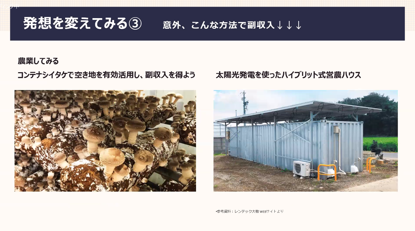 たとえば、上のように飲食店や民泊として、という活用方法や、ときに、建物ではない活用方法も、という内容から、いかに柔軟な発想が大切か、ということも学びました。