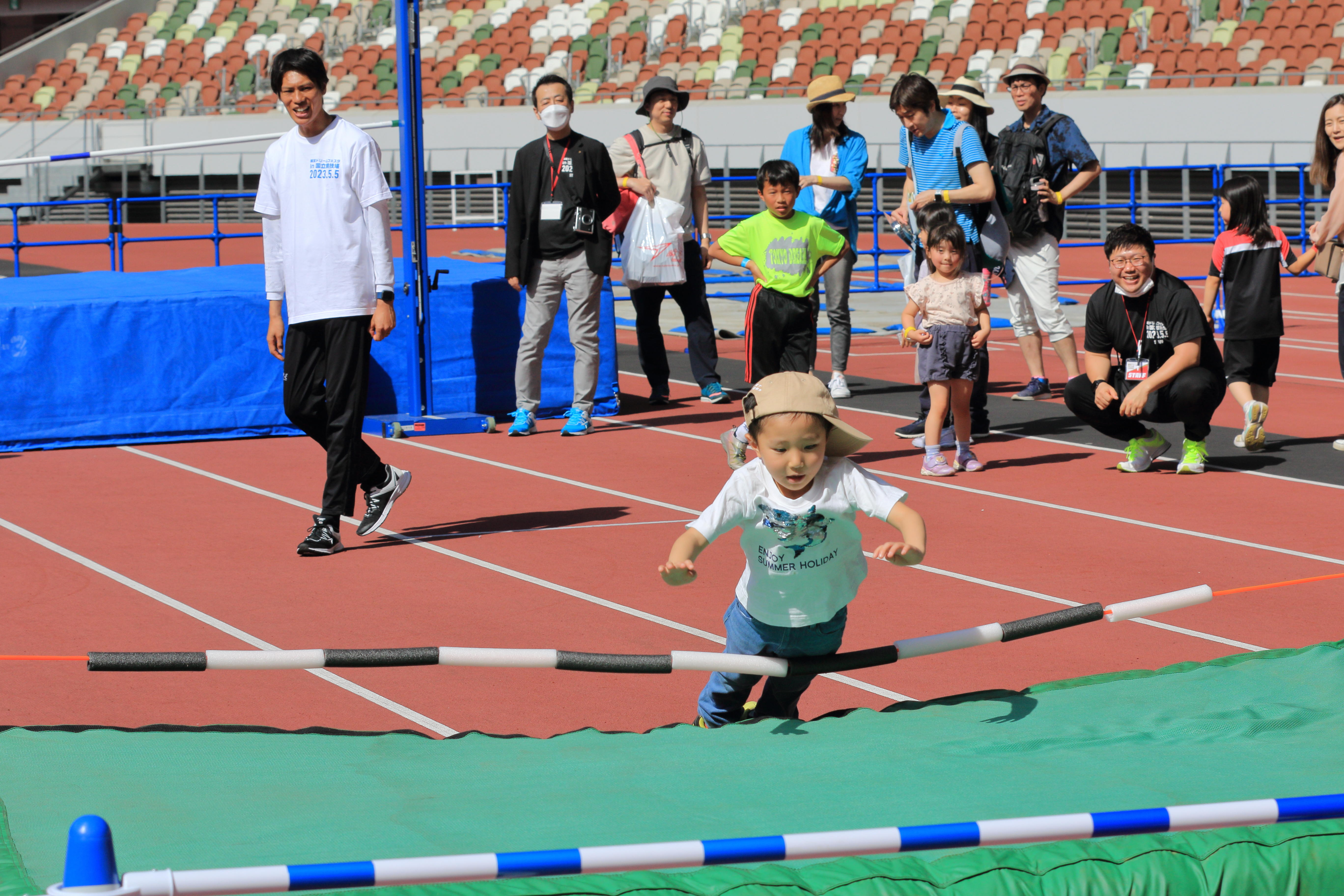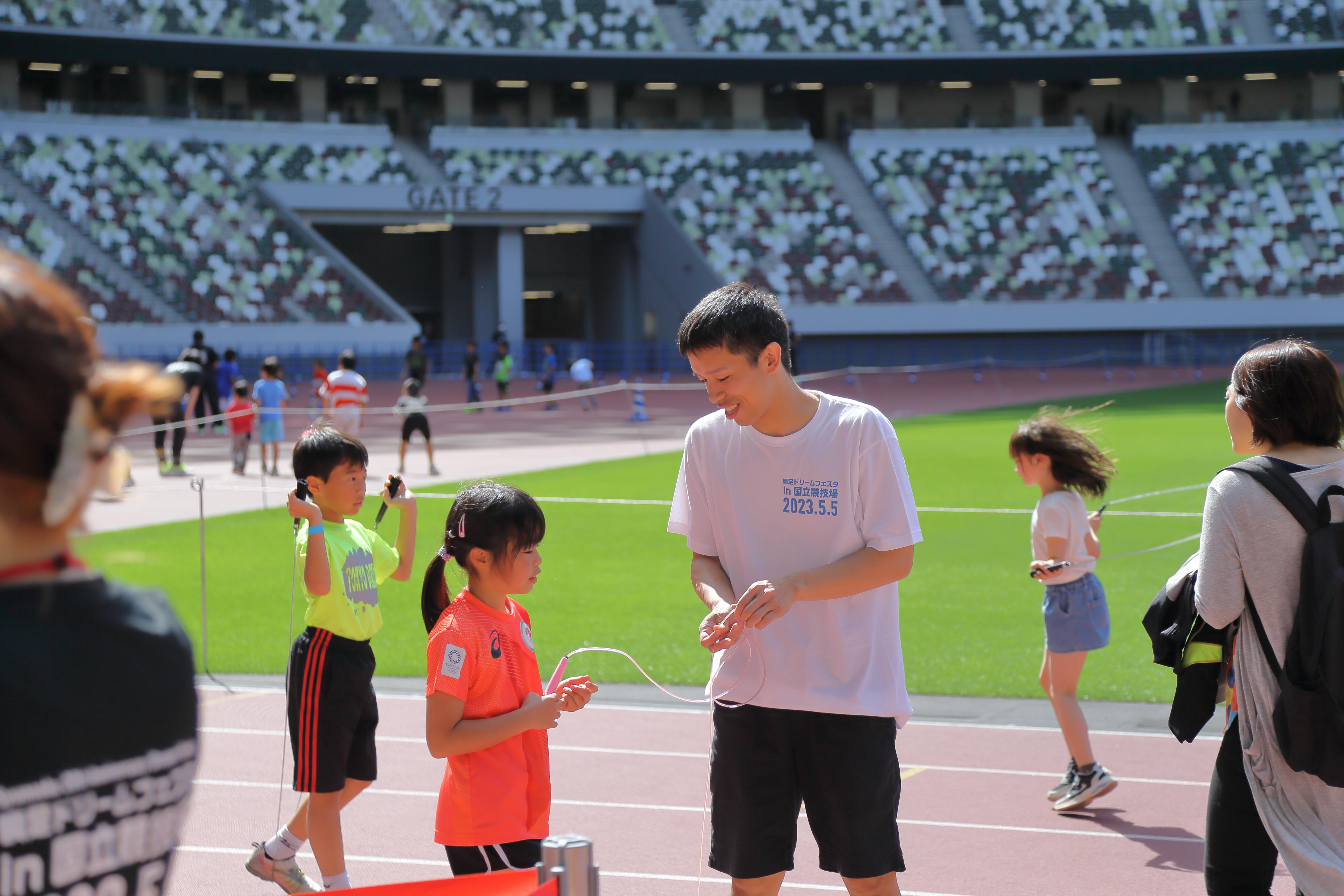 走り高跳びのコーナーには佐藤凌選手が、そしてなわとびコーナーでは、7重跳び世界記録保持者のもりぞーさんが、子どもたちをやさしく指導(なんて贅沢なのでしょう...!)。