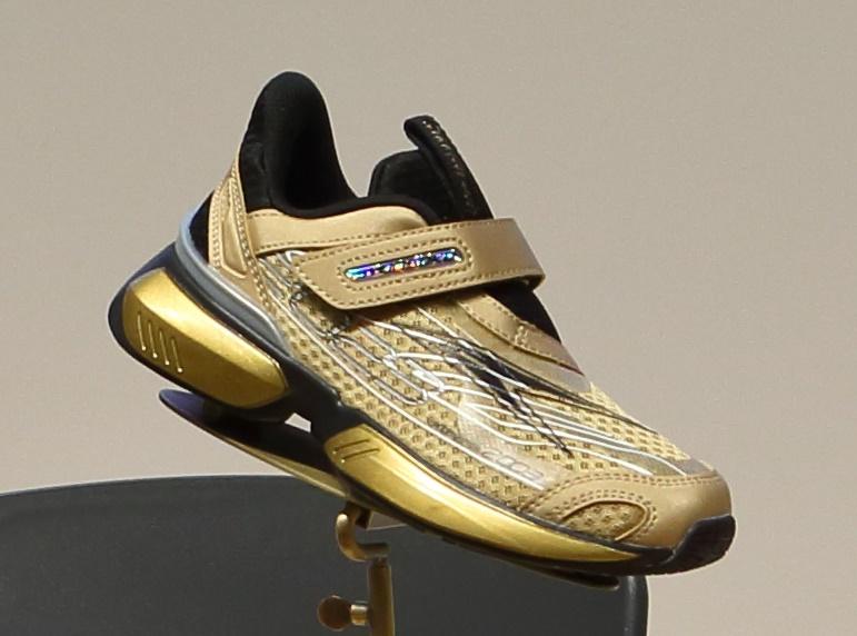 そして、海野実執行役員シューズ事業部長からは「子どものころに瞬足を履いていたという社員が、企画に 携わっている。子どもを惹きつけるデザインを常に研究しています」というお言葉もありました。子どもの頃に履いていたシューズを作っているなんて、すてきですよね。今年記念モデルとして発売された「瞬足 JJ-055」(6色展開)は、瞬足20周年にふさわしい、近未来を感じさせるデザイン。イメージはリニアモーターカーだそうです。