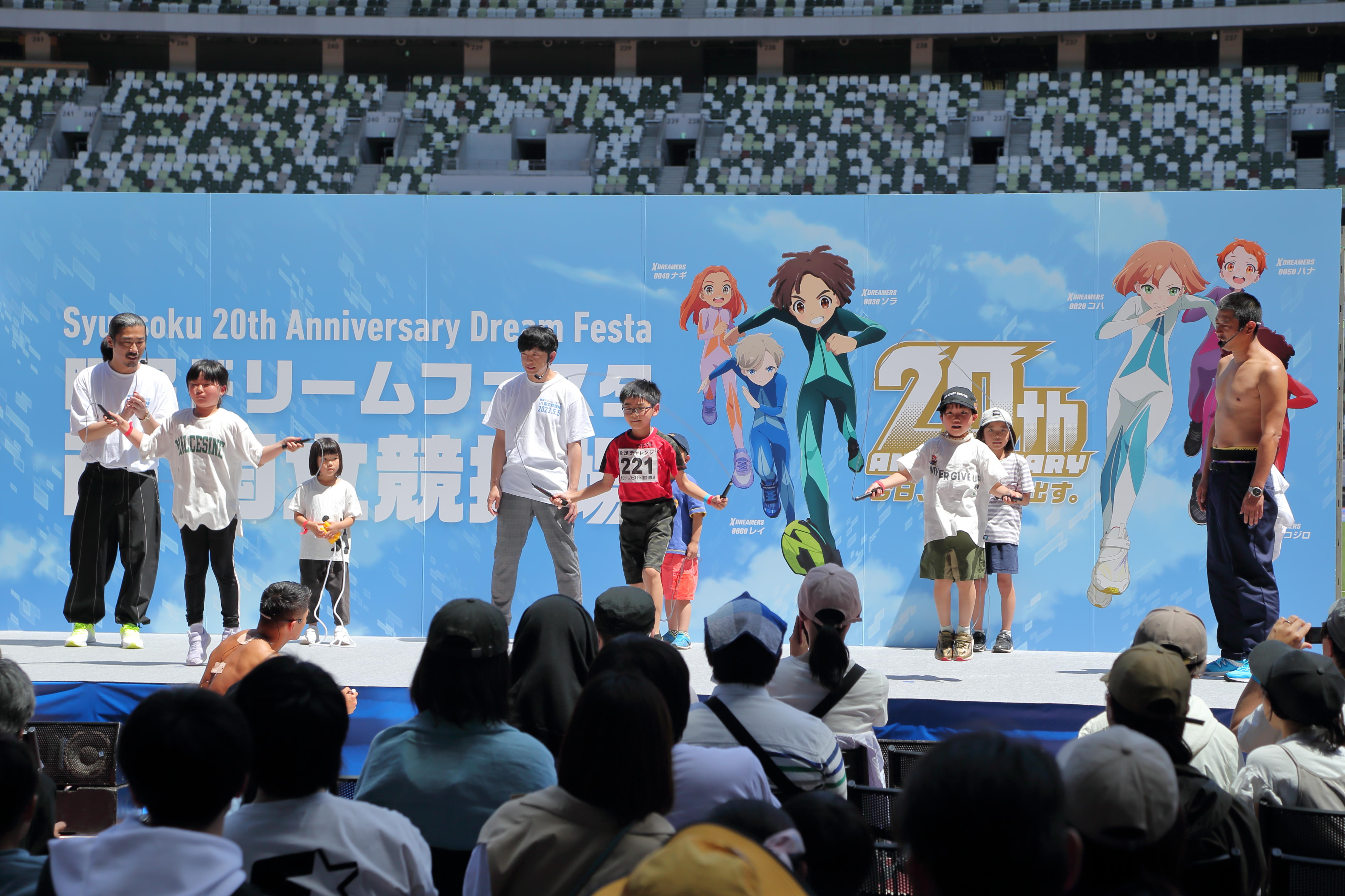 イベント実施は、国立競技場。「ドリームフェスタin国立競技場」は、オリンピックでも使われたフィールドで行われました。4年ぶりの実施となり、学年別に予選決勝が実施される「瞬足チャレンジ」というコーナー走をはじめ、盛りだくさんのプログラム!フィールドの様子を、続けてご紹介します!