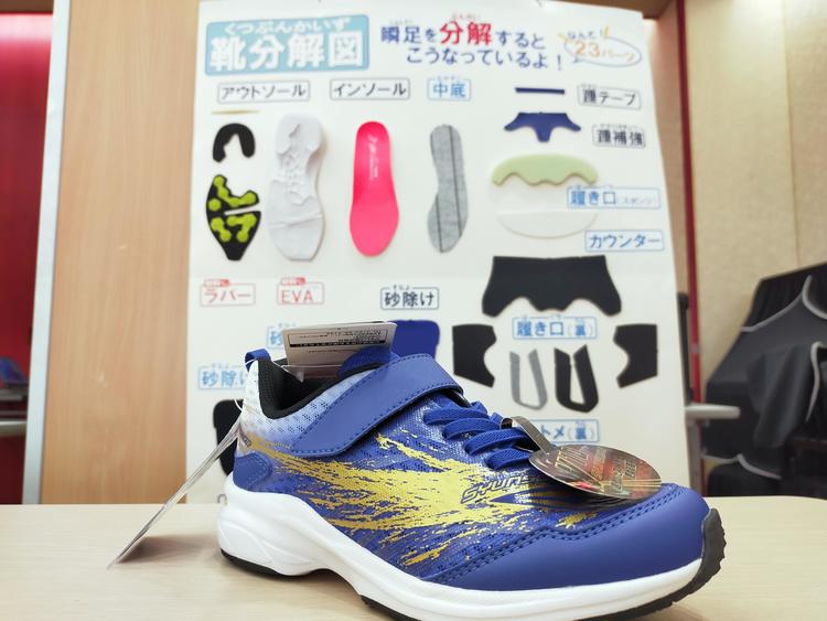 靴の分解図を見ると、瞬足は23ものパーツからできていることがわかります。