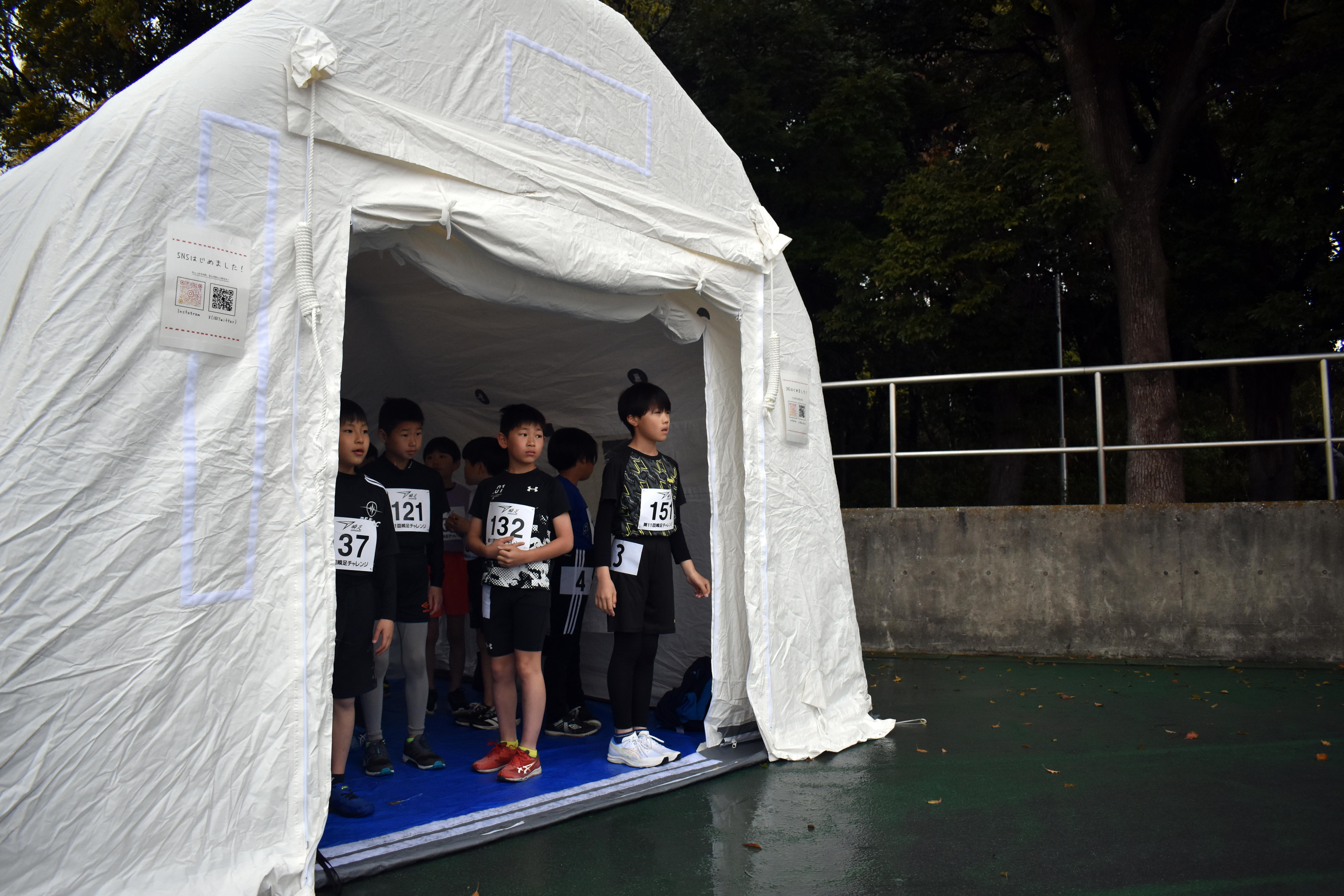 その大型テントを、雨が降り始めた早い段階でスタート付近に移動させ、子どもたちの控え場所として活用してくれていたのです。