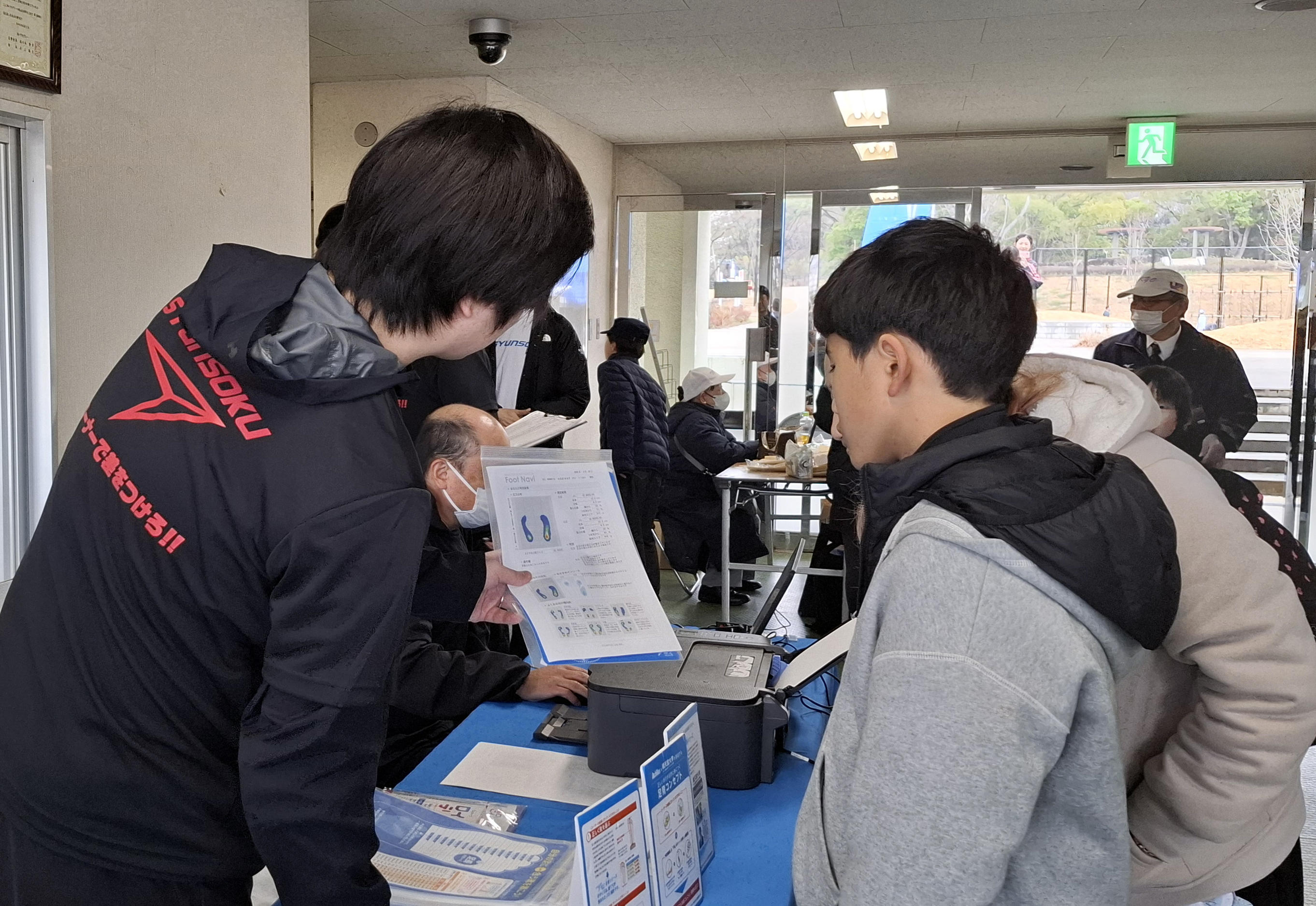 柳谷教授は、シューズやフォームが走りのパフォーマンスやケガのリスクにどう影響するかを研究する専門家です。会場の一角には、そうした視点とも関わりの深い「足型測定コーナー」が設けられていました。