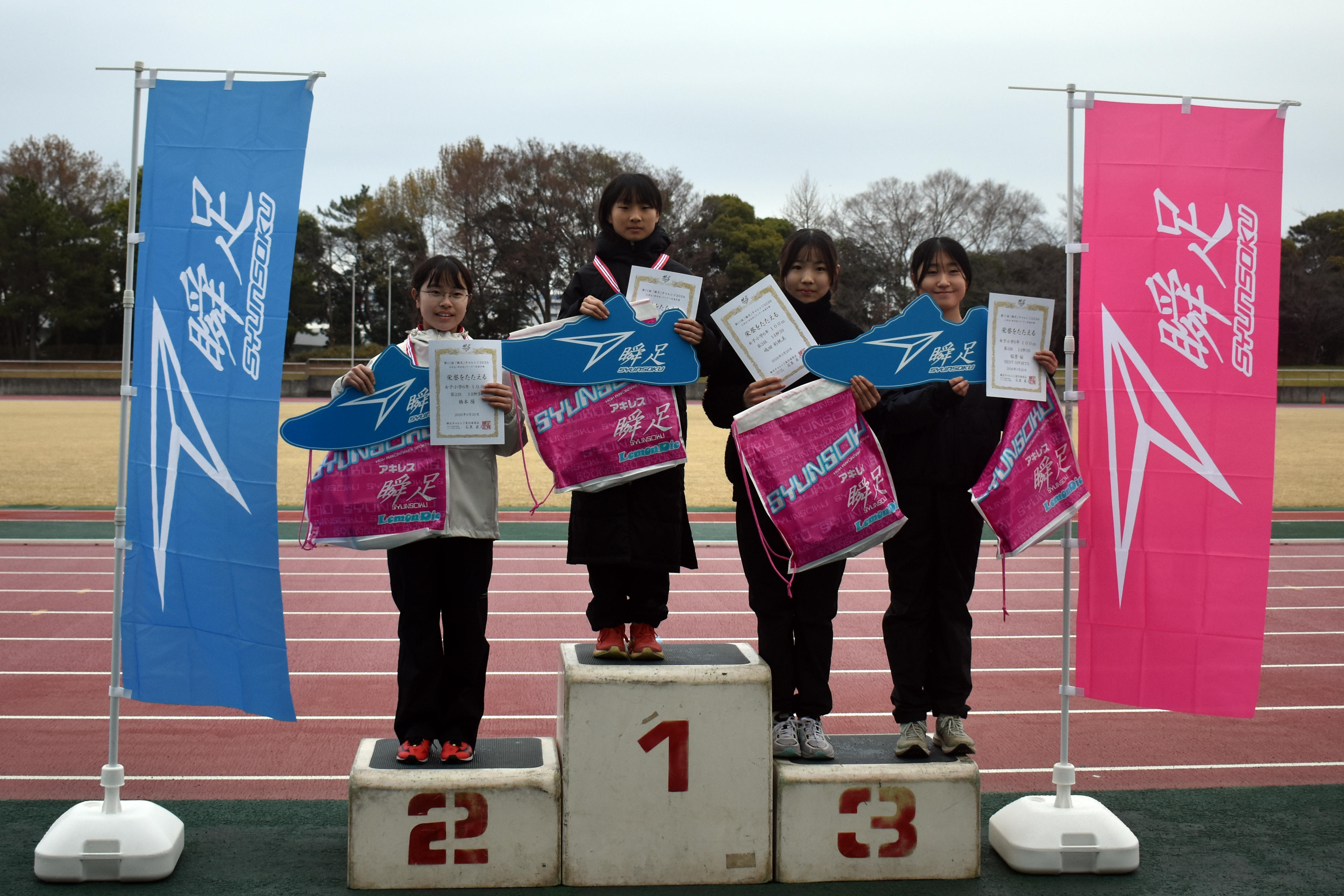 今大会の参加者は330名と昨年より大幅に増え、特に3〜4年生が多い大会となりました。参加者全員に「瞬足チャレンジ記録証」とオリジナルグッズが贈られます。決勝レースの1〜3位入賞者には、副賞を添えた賞状が授与されました。