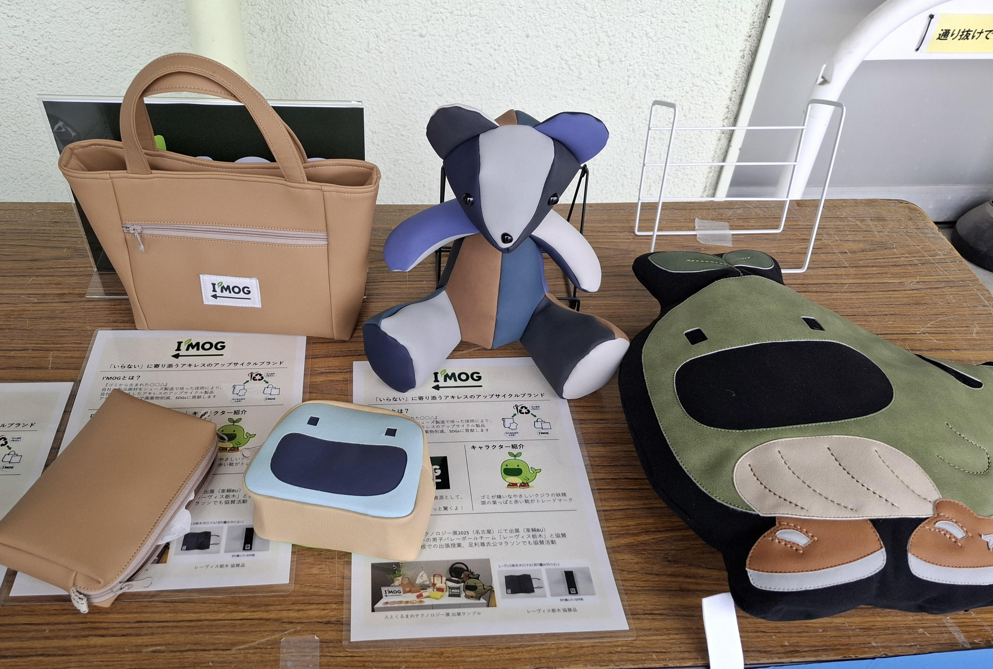 「I'MOG(あいもぐ)」は、アキレスのSDGs取り組みの1つです。逆から読むと「GOMI(ごみ)」となる名前の通り、車両用内装材などの廃材から、ポーチやバッグ、マスコットなどを生み出しています。革の端材から生まれたI'MOGグッズ