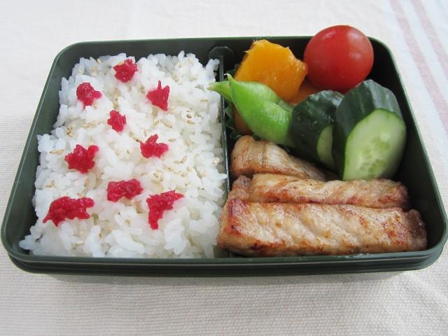- ご飯...冷めたら2等分にしてお弁当箱に詰め、梅肉と白ごまを散らす。