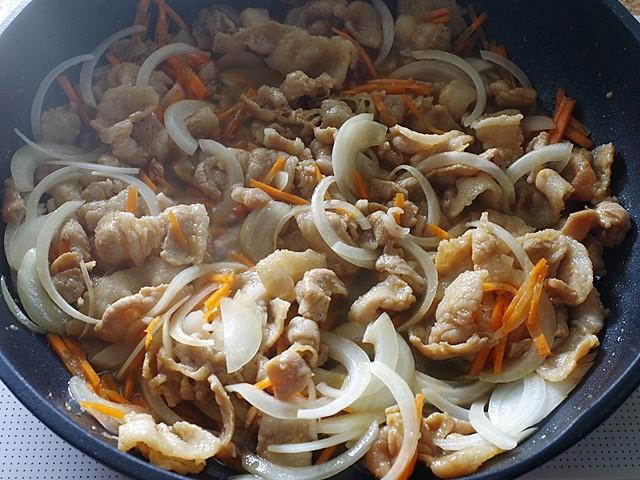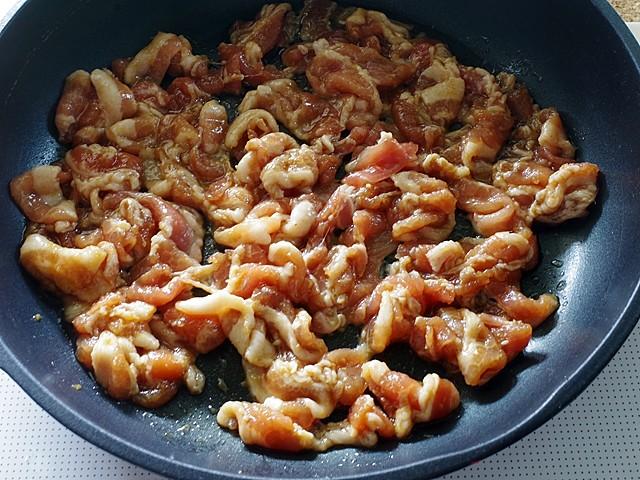 - 豚バラスライス肉...幅約4㎝に切って塩、コショウを振り、<A>と一緒にポリ袋に入れ、軽くもんで5分ほど置く。