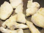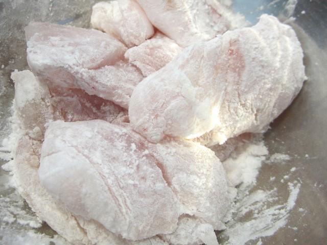 タラを一口大に切って塩とコショウを振り、キッチンペーパーで水気をよく拭き取って片栗粉をまぶす。