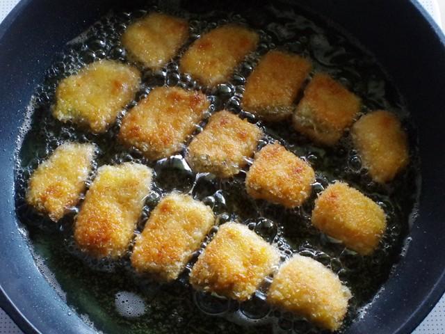 - ・サラダ油が冷たいうちから鮭を入れてじわじわ揚げ焼きすると、油跳ねが少ない上に、衣はカリっと中はふんわりと揚がります♪
