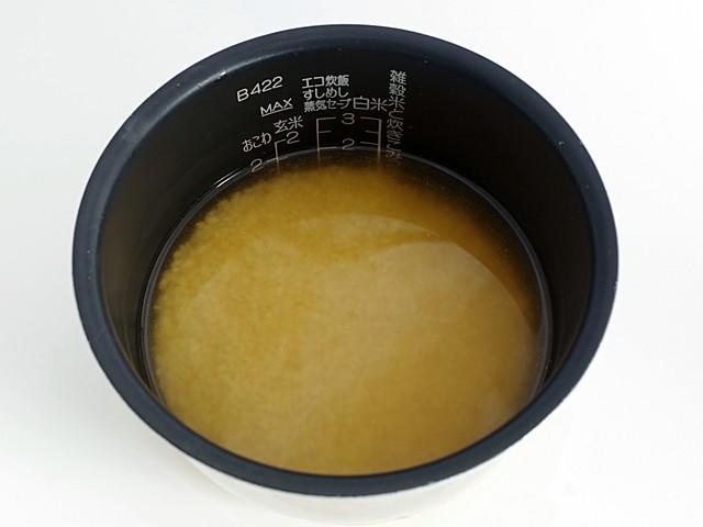 - 米...研いでザルに上げ、30分ほど置く。