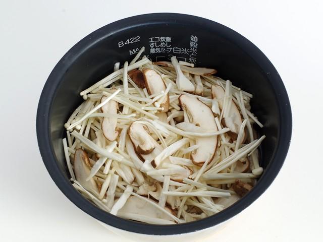 - しいたけ...石突を切り落とし、幅2mm程度に切る。