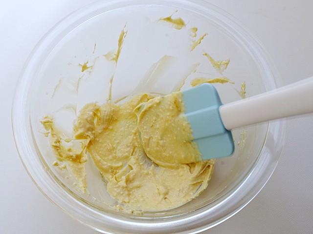 - クリームチーズ...十字に切って大きめの耐熱ボウルに入れ、電子レンジ(600W)で約20秒加熱する。