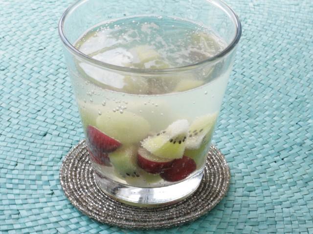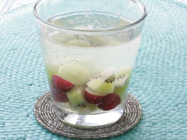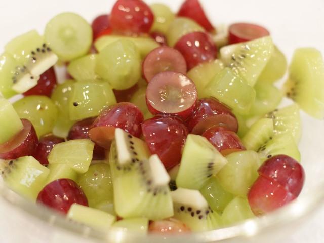 - キウイフルーツ...ヘタを切り落として縦に4等分にし、横にして幅約1cmに切る。