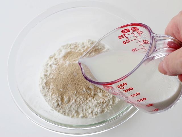 - 牛乳...耐熱容器に入れて電子レンジ(600W)で20~30秒加熱して人肌程度(40℃未満)に温める。