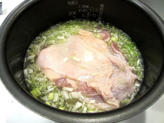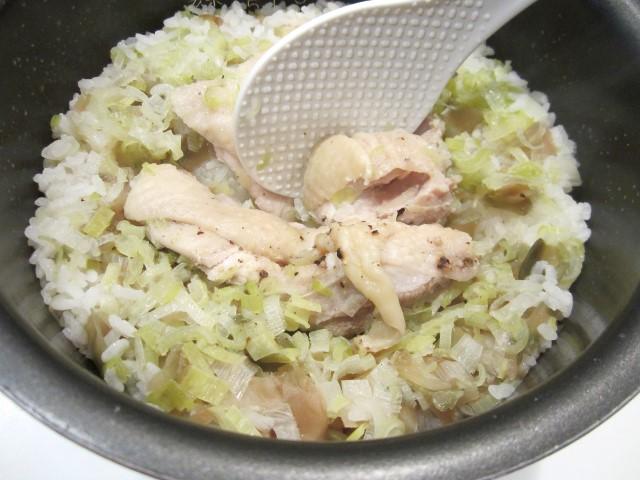 - ・炊き上がったら、鶏もも肉はしゃもじで簡単にほぐれます。