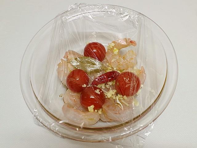 - ・アヒージョは低温の油で煮る料理です。そのため、ラップをするときは両サイドを1㎝程度あけて、高温になるのを防ぎましょう。