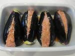 2.1を4等分して、なすにはさみ、耐熱皿にのせる。