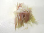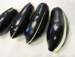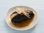 - なす...ヘタを取り除いて上側2㎝程度を残して縦半分に切り込みを入れ、さっと水にさらして水気を切る。