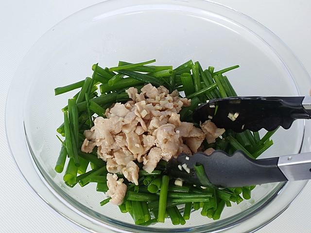 - 青ねぎ...幅約3cmに切って水に5分程度浸し、ザルに開けて水気を切る。