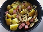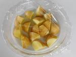 - じゃがいも...皮ごと乱切りにして水にくぐらせる。