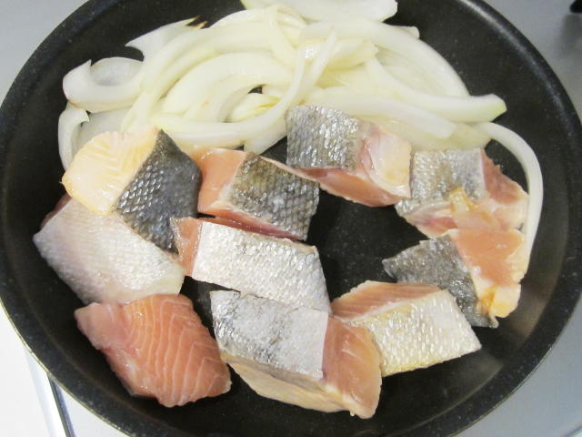 - 玉ねぎ...芯を切り落とし、スライスする。