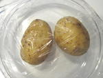 - じゃがいも...洗って耐熱皿に乗せて軽くラップをし、電子レンジ(600W)で3~4分加熱する。