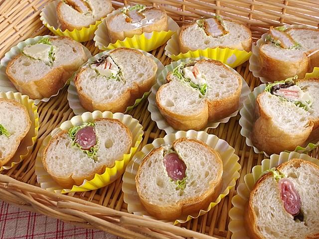 - バゲット...底5mm程度残して縦長に切り込みを入れ、マーガリンを塗る。