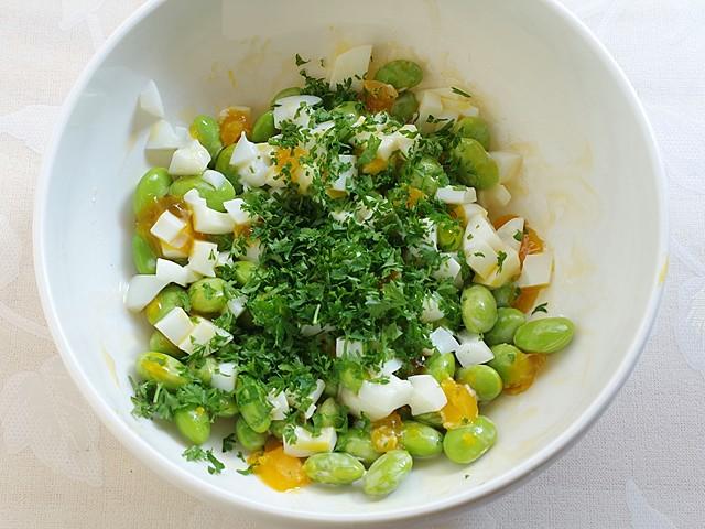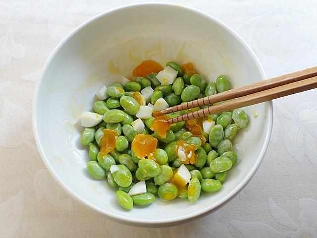 - 冷凍枝豆...流水で解凍し、さやから取り出す。