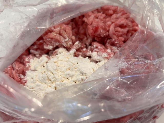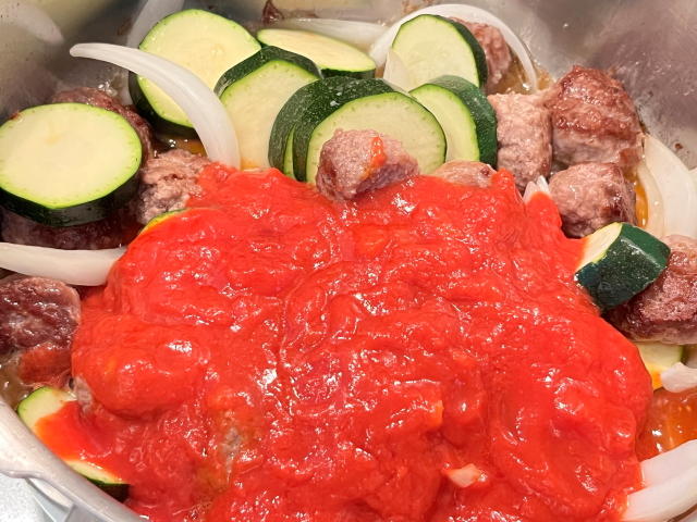 - ズッキーニ...ヘタを切り落として幅7mm程度の輪切りにし、塩(少々)を振って1分程度おいた後、軽く洗って水気を切る。