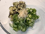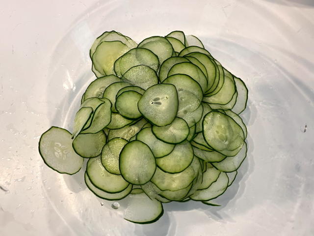 - きゅうり...ヘタを切り落し薄くスライスする。