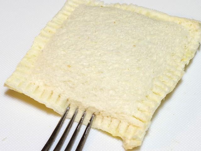 - ・パンの端をフォークあるいは手で押しつぶすようにすると、ホットサンドメーカーがなくても袋状のサンドイッチになります♪