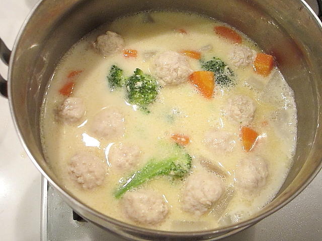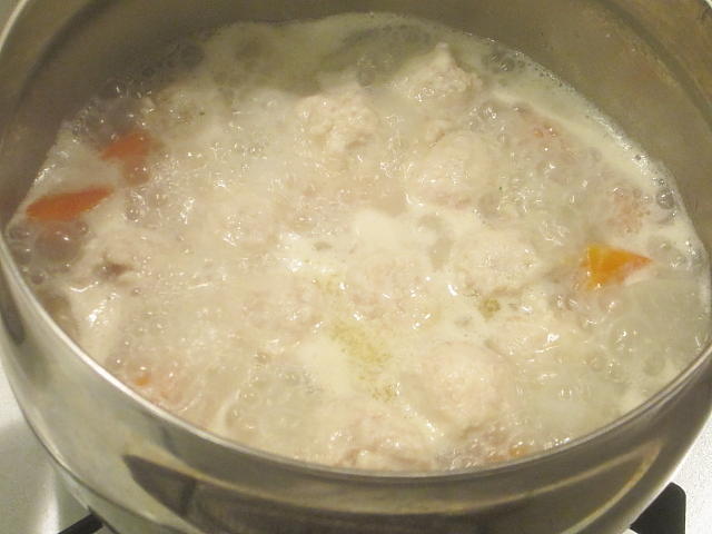鶏団子の豆乳スープ