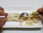- 鶏のささみ...耐熱容器に入れてラップをかけ、約1分電子レンジ(600W)で加熱し、フォークなどでほぐす。