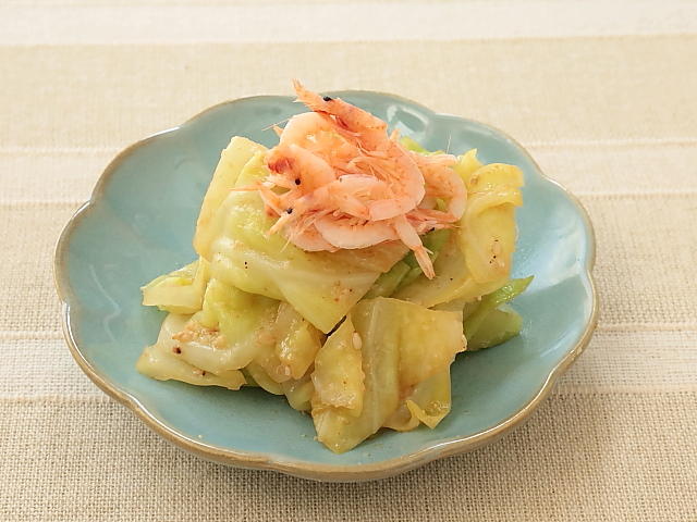 レンジで簡単!キャベツの緑と桜エビのピンクが春らしさを演出