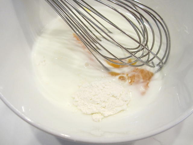 1.耐熱性のボウルに<A>の材料をすべて入れ、泡立て器で混ぜる。