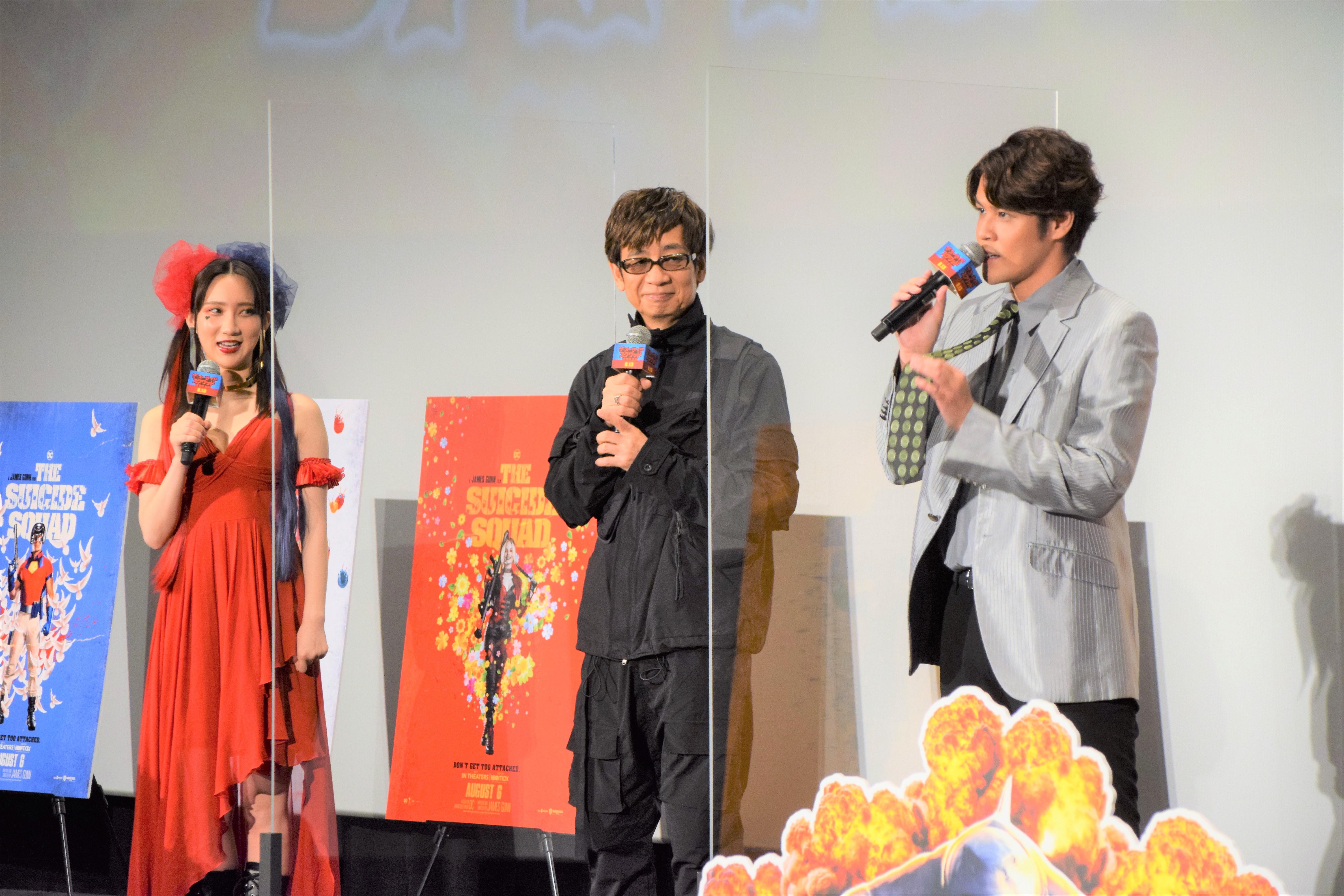 8月9日(月・祝)、 都内にて、映画『ザ・スーサイド・スクワッド』(ジェームズ・ガン監督、13日公開)のジャパンプレミアイベントが開催されたので、取材に行ってきました。この日は日本語吹き替え版で声優を務めた山寺宏一さん、宮野真守さん、ファーストサマーウイカさんが登壇。お三方から映画の見どころを聞くことができました!