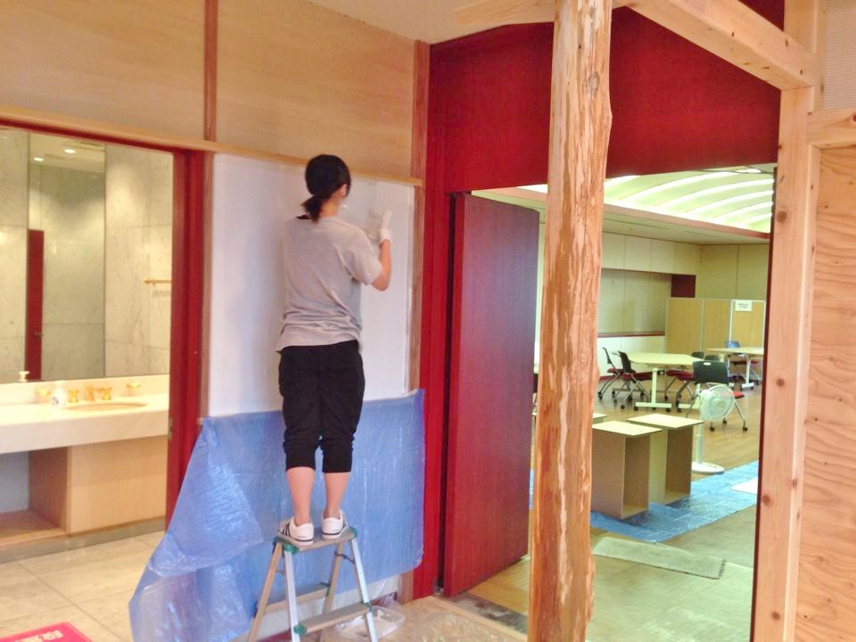 オープン直前のペンキ塗り、床のオイル塗りなどは、スタッフやその家族も一緒に
